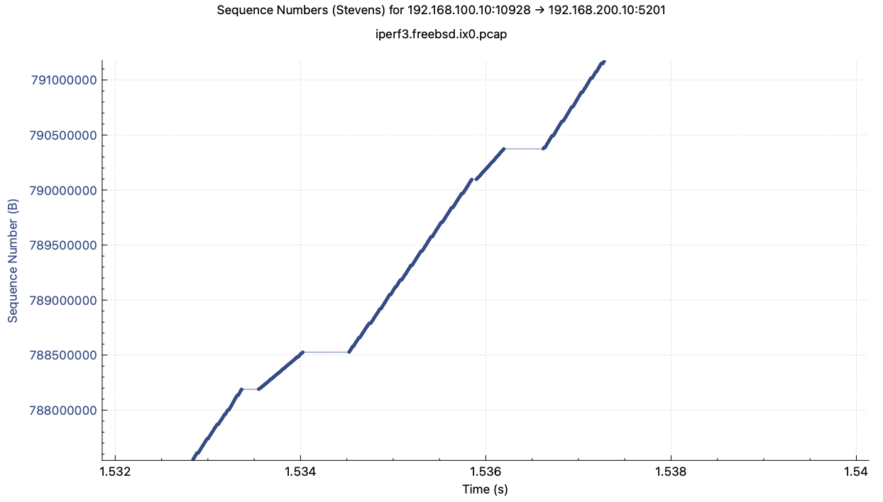 > [ 5] 0.00-1.00 sec 343 MBytes 2.87 Gbits/sec 75 1.04 MBytes